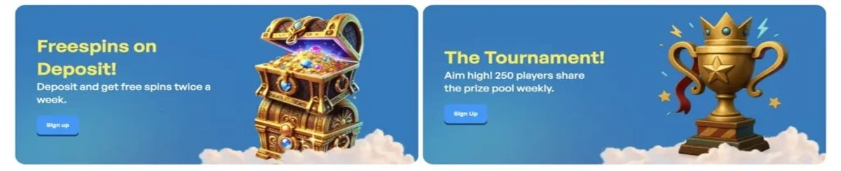 Daarnaast hebben we dagelijkse promoties, zoals free spins op geselecteerde slots of een bonus buy optie bij speciale spellen. Het aanbod wisselt regelmatig; onze promotiepagina bevat altijd de actuele deals.